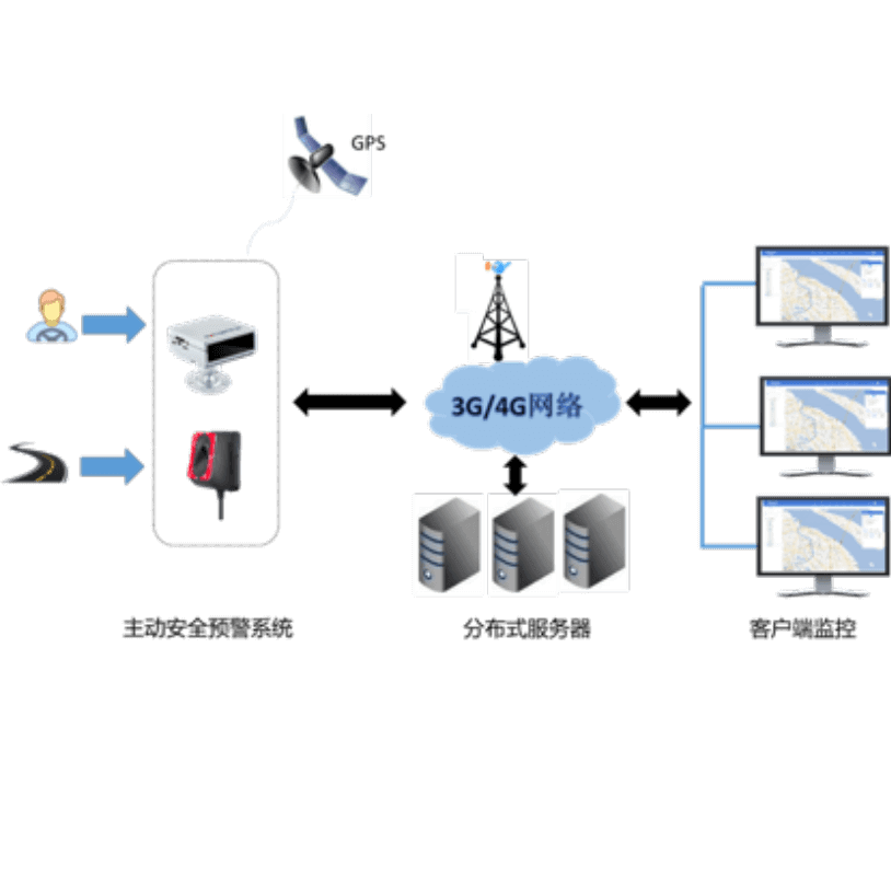 车辆主动安全预警管理系统有主动安全预警系统、企业监控运营管理平台和大数据云服务器构成。主动安全预警系统由驾驶行为分析预警设备、前向主动安全预警设备构成。通过营运车辆中安装主动安全预警系统,结合4G网络、企业监控运营管理平台和在途卫士APP可以实时掌握车辆和人员的工作情况,建立全区域、全时段、全痕迹、司机全状态(瞌睡、打电话、吸烟、分神等)的车辆动态监控系统。