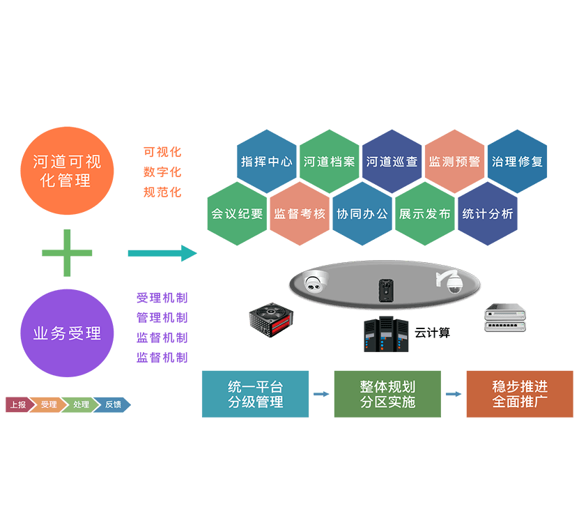 河长制可视化综合管理平台围绕河长制工作的实际需求,基于河道网格化管理体系,依托gis地理信息、GPS、基站定位、云计算、物联网、大数据、移动通信网等技术,同时融合“受理、管理、监督、考核”四个监督机制进行设计开发.