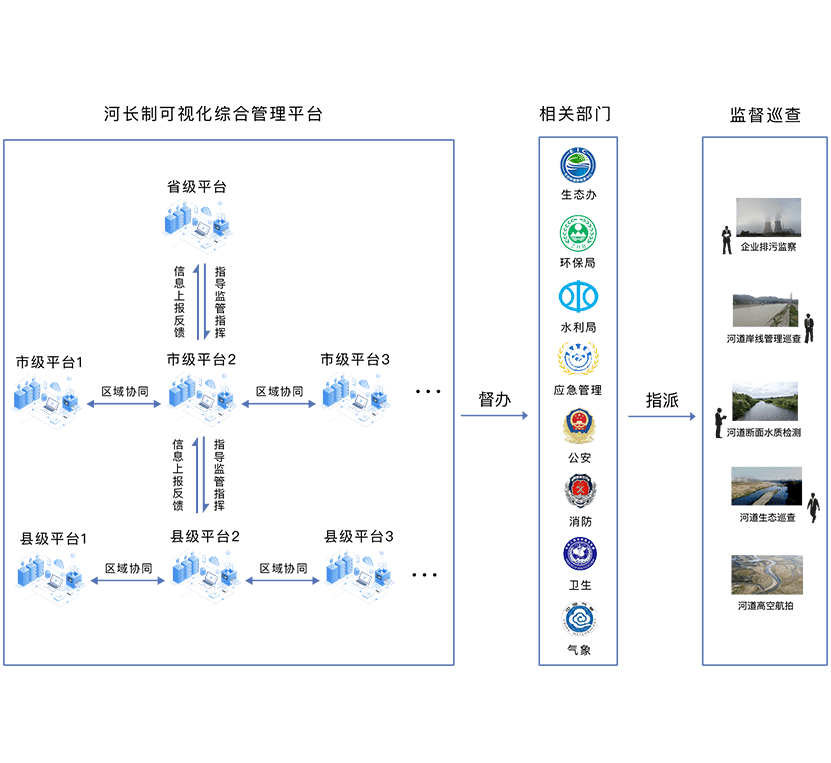 建立省、市、县(区)多层次信息化平台建设三级信息平台级联共享机制,形成省、市、县、镇、村五级河长管理体系。