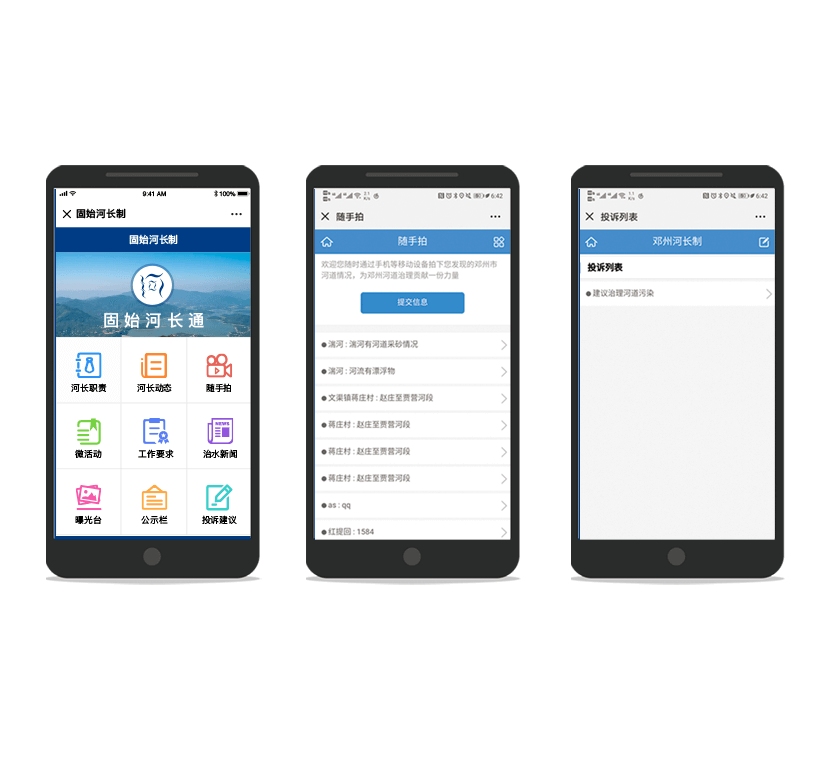 通过河长制可视化综合管理平台将管理端的领导、工作人员、指挥中心与巡查端的环保、水利等各部门工作人员连接,实现日常管理、应急处理的可视化,同时可以对巡河人员的工作进行自动跟踪,确保巡河任务保质保量的完成。