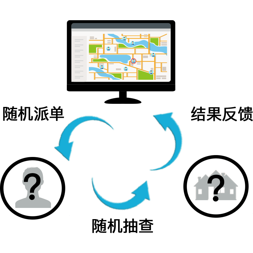 平台随机派单给网格巡查员,并且随机选择即将要抽查的场所,双重随机,保证检查 的真实性、有效性。